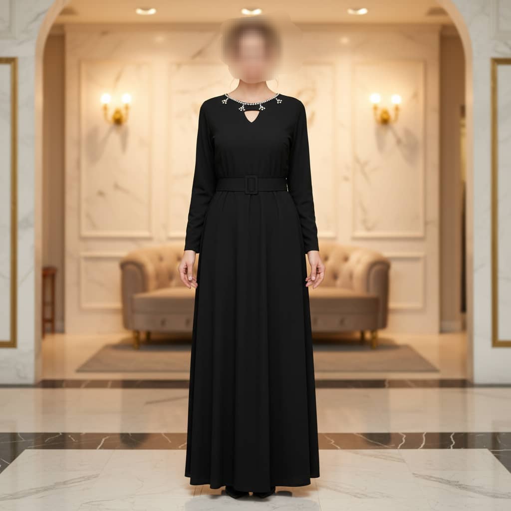 جنس : کرپ دورو پشت کار زیپ داره یقه نگین پانچی کار شده
