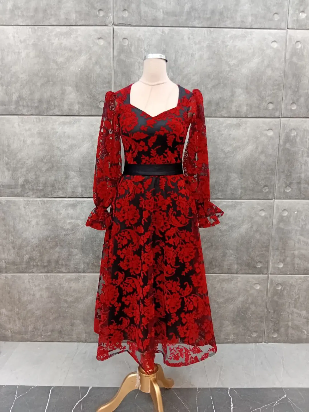 مدل یلدا لباس فلوک مخمل با آستر و رنگ بندی ژورنال. قدکار ۱۲۵ سانتیمتر، پشت کار زیپدار و با کمربند.